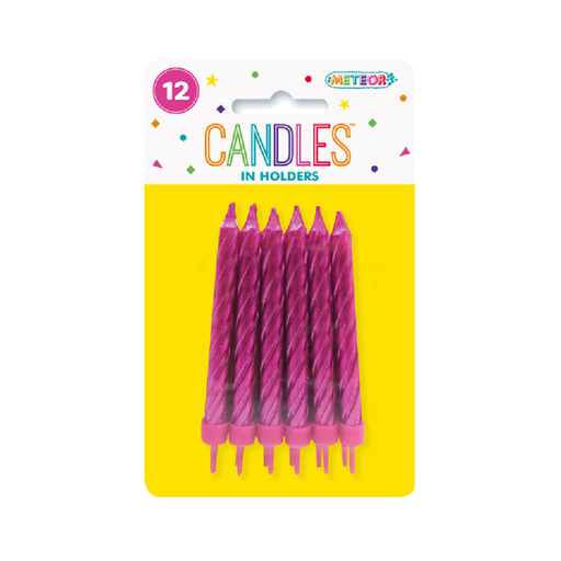 View full detailsLight up your birthday cake in style with our 12 Metallic Candles in Holders. This pack includes twelve candles with a fun spiral texture and a shi...