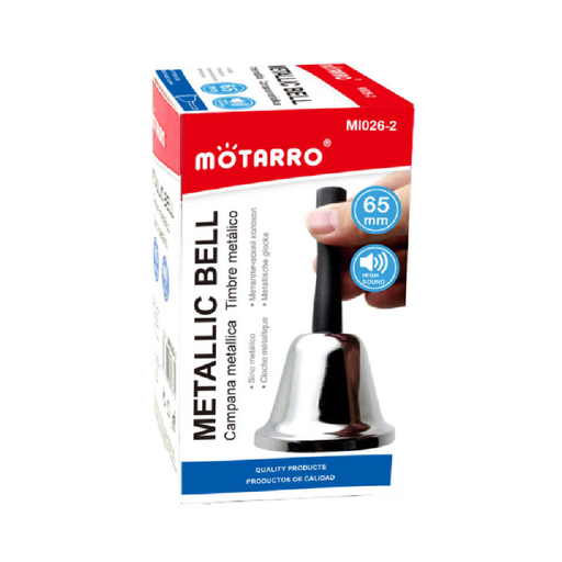 View full detailsThis metallic bell produces a clear, crisp sound—perfect for classrooms, games, counters, or home décor. Made from durable metal with a shiny finis...